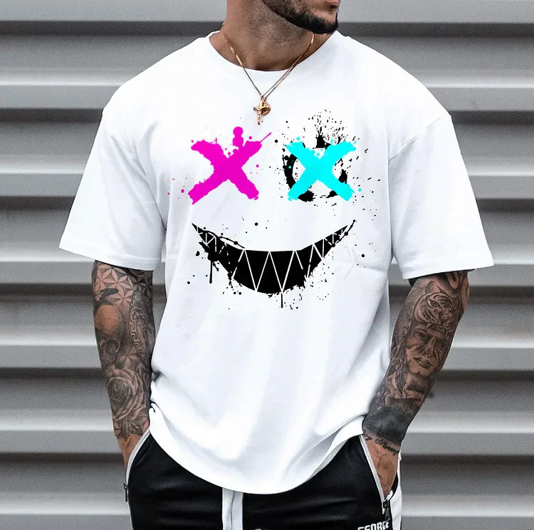 Fashion Smiley Print Short Sleeve T-Shirt Casual Crew Neck Top