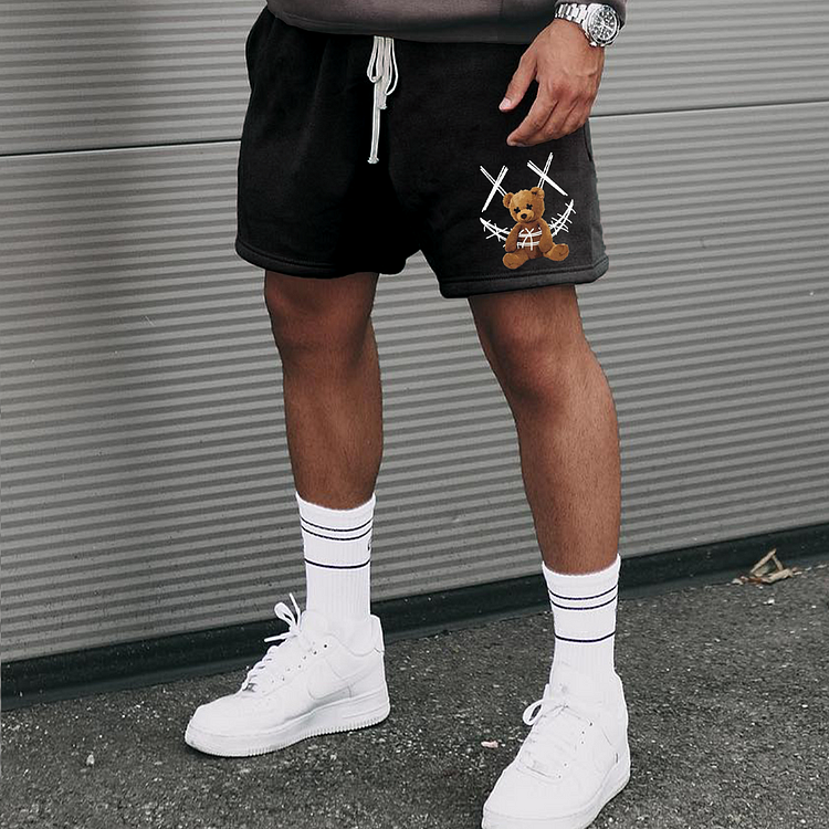 Retro Smiley Teddy Bear Print Casual Sports Shorts