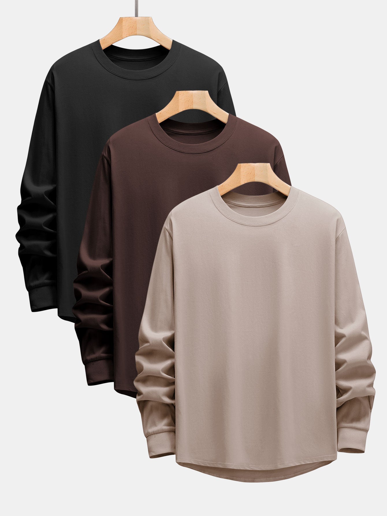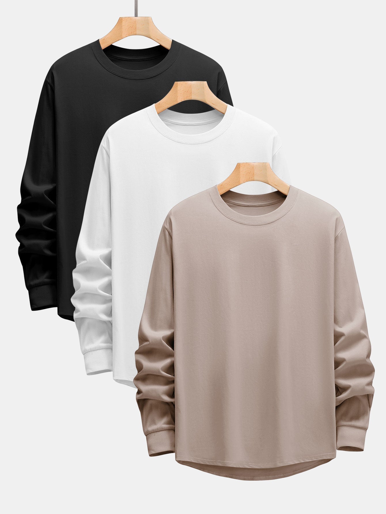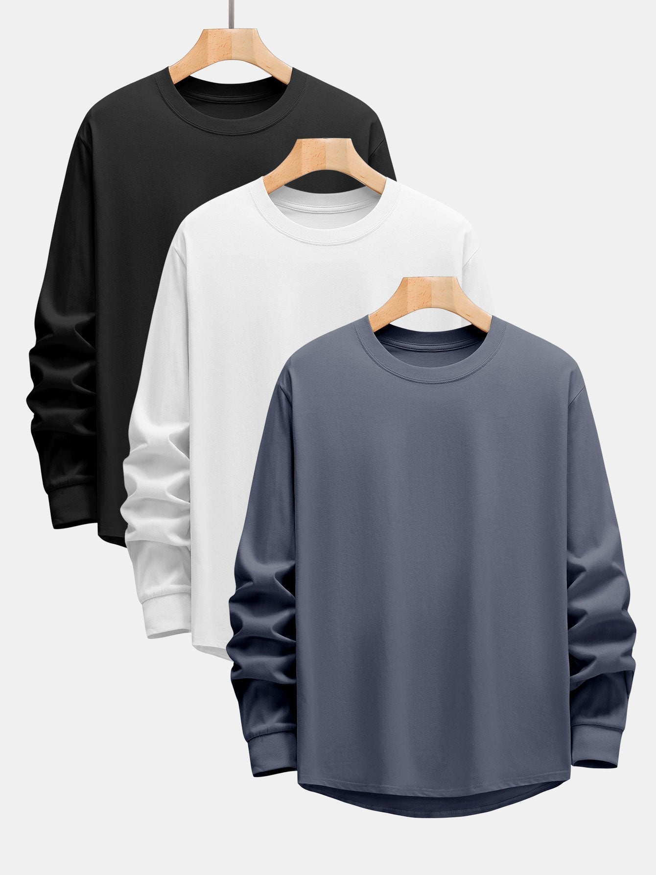 Adeimantos® | 3 Pieces Basic Long Sleeve Heavy Weight Arc Hem T-Shirts