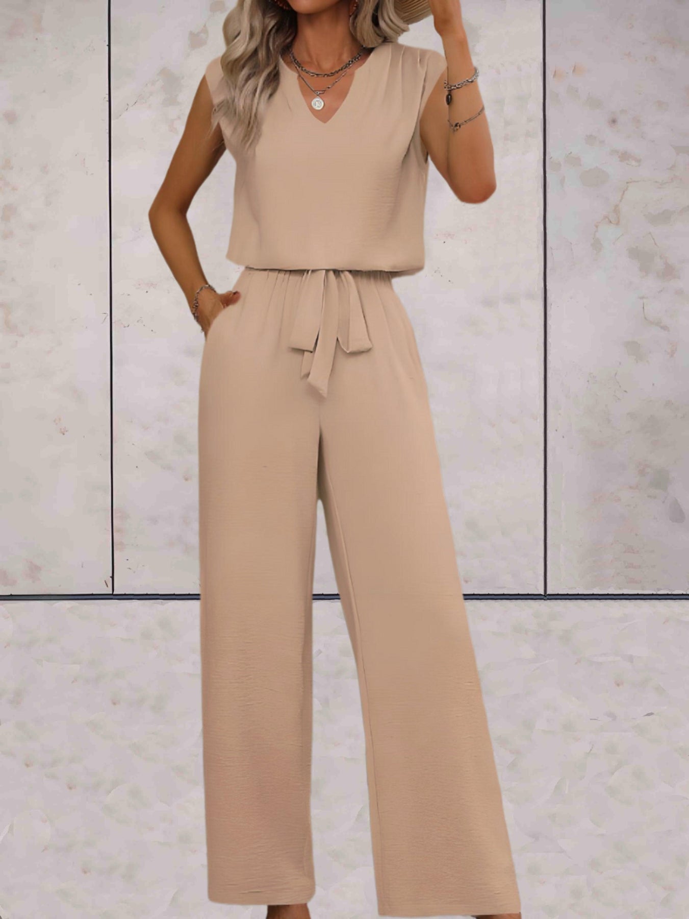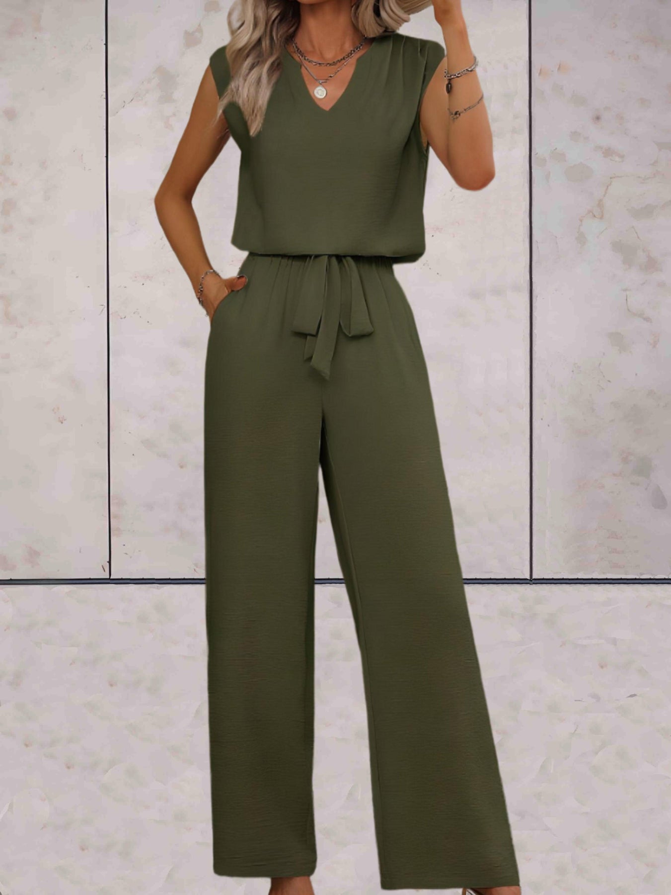 Erin® | Elegant V-Neck Sleeveless Blouse And Pants Set