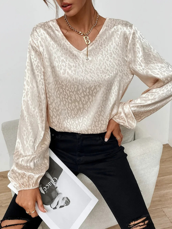 Logan® | Loose Long Sleeve V Neck Leopard Print Blouse