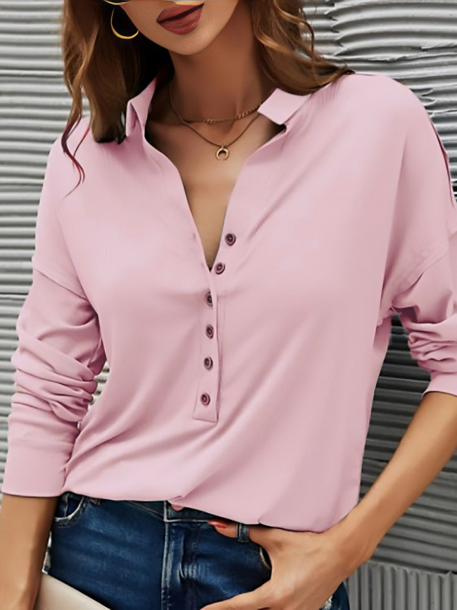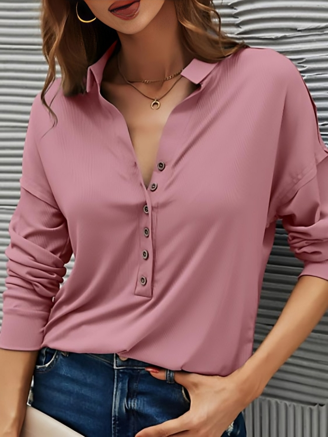 Lucy® | Cozy Long-Sleeved Button-Down Blouse