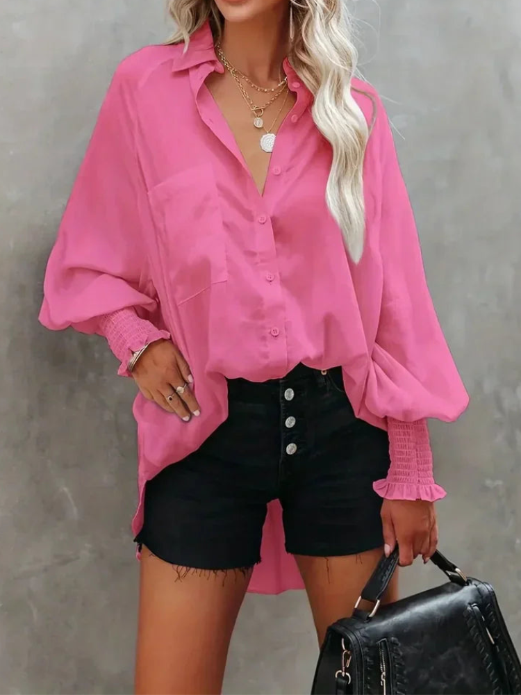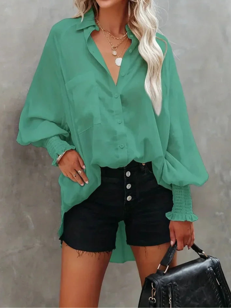 Nives® | Elegant Long-Sleeved Button-Down Polo Blouse