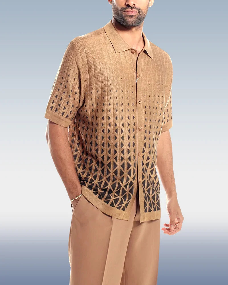 Cafe Criss-Cross Pattern Walking Suit Short Sleeve Set