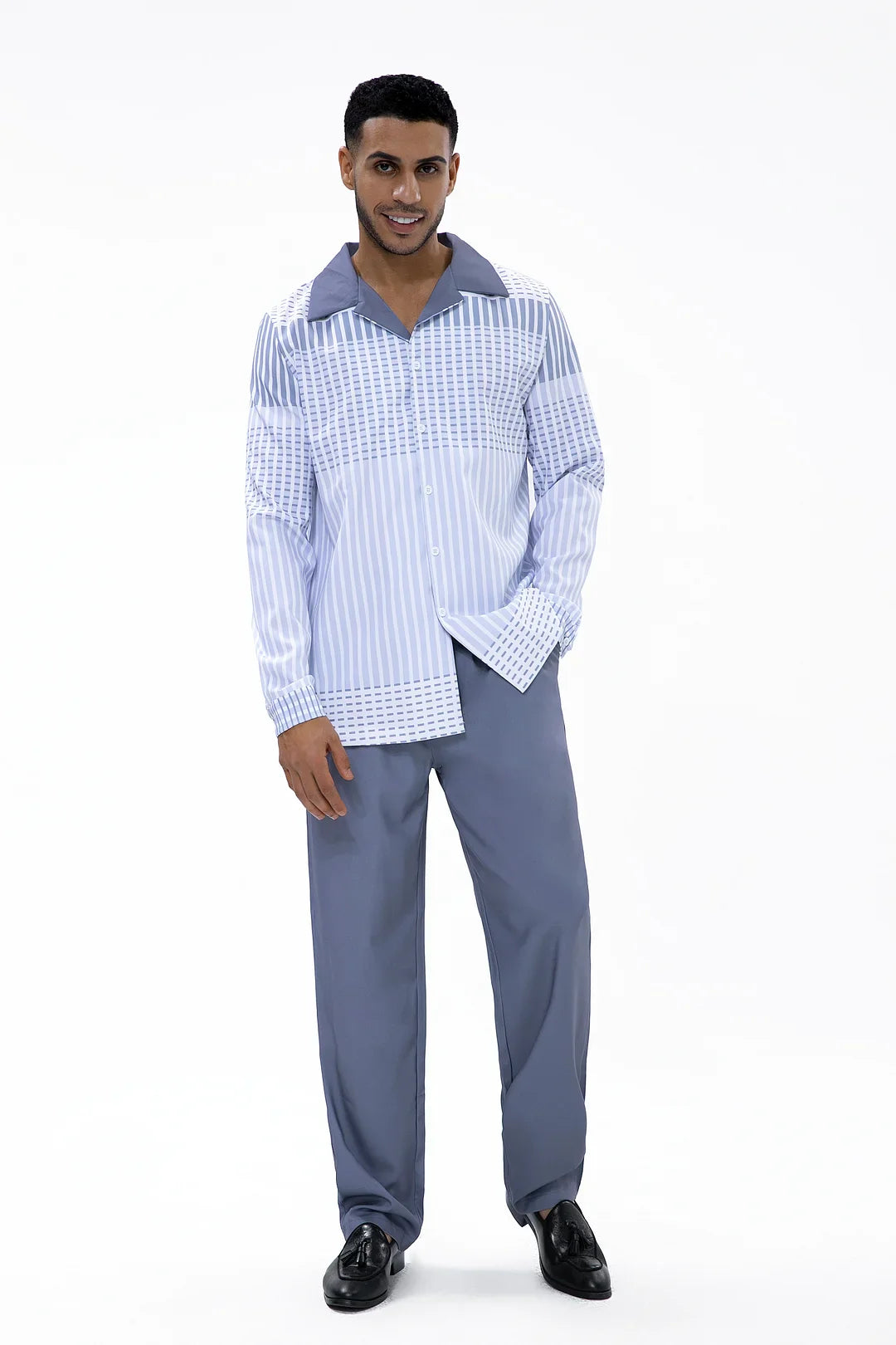 Grey Gradient Long Sleeve Trousers Two-Piece Walking Set