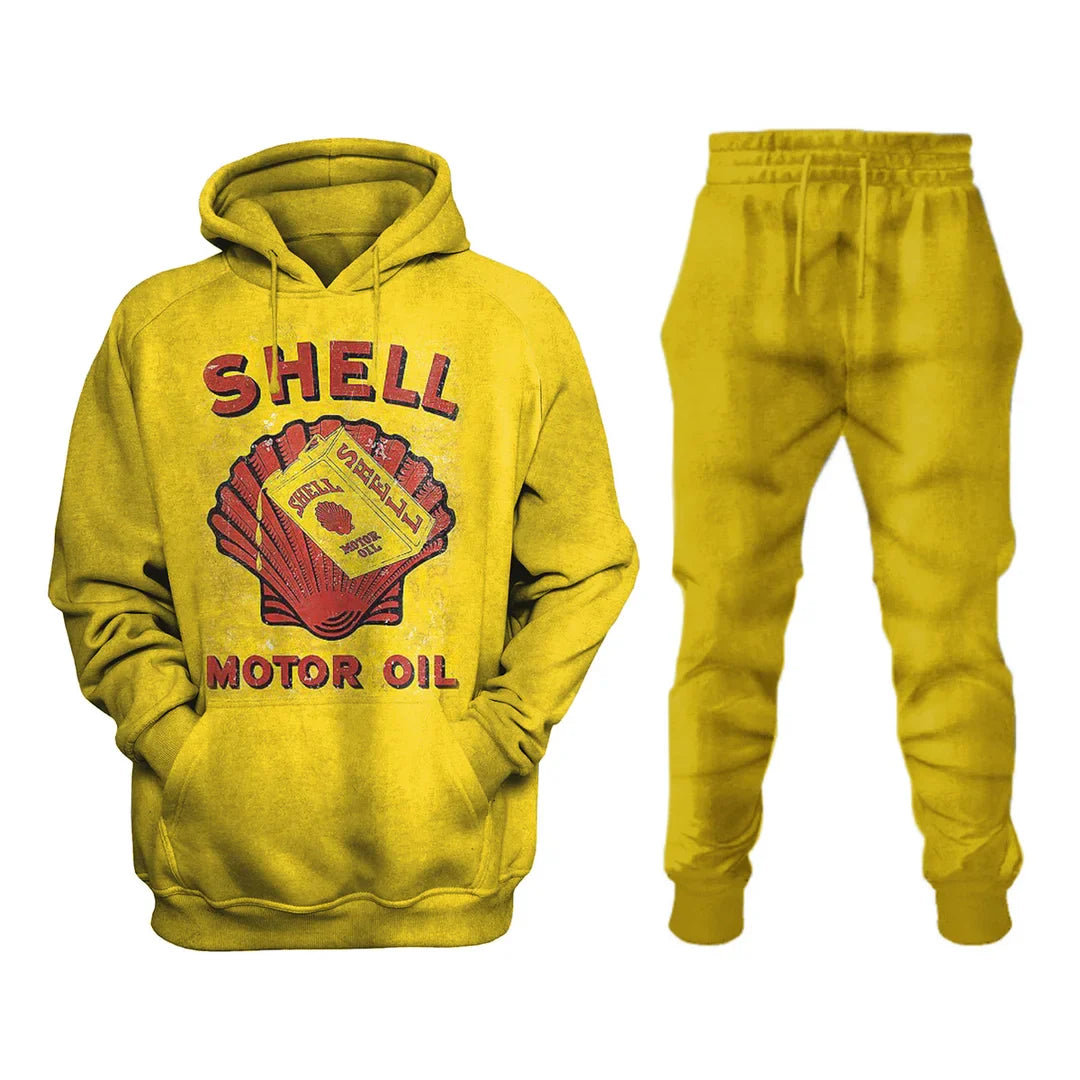 Shell Retro Casual Engine Oil Print Sweatshirt Set