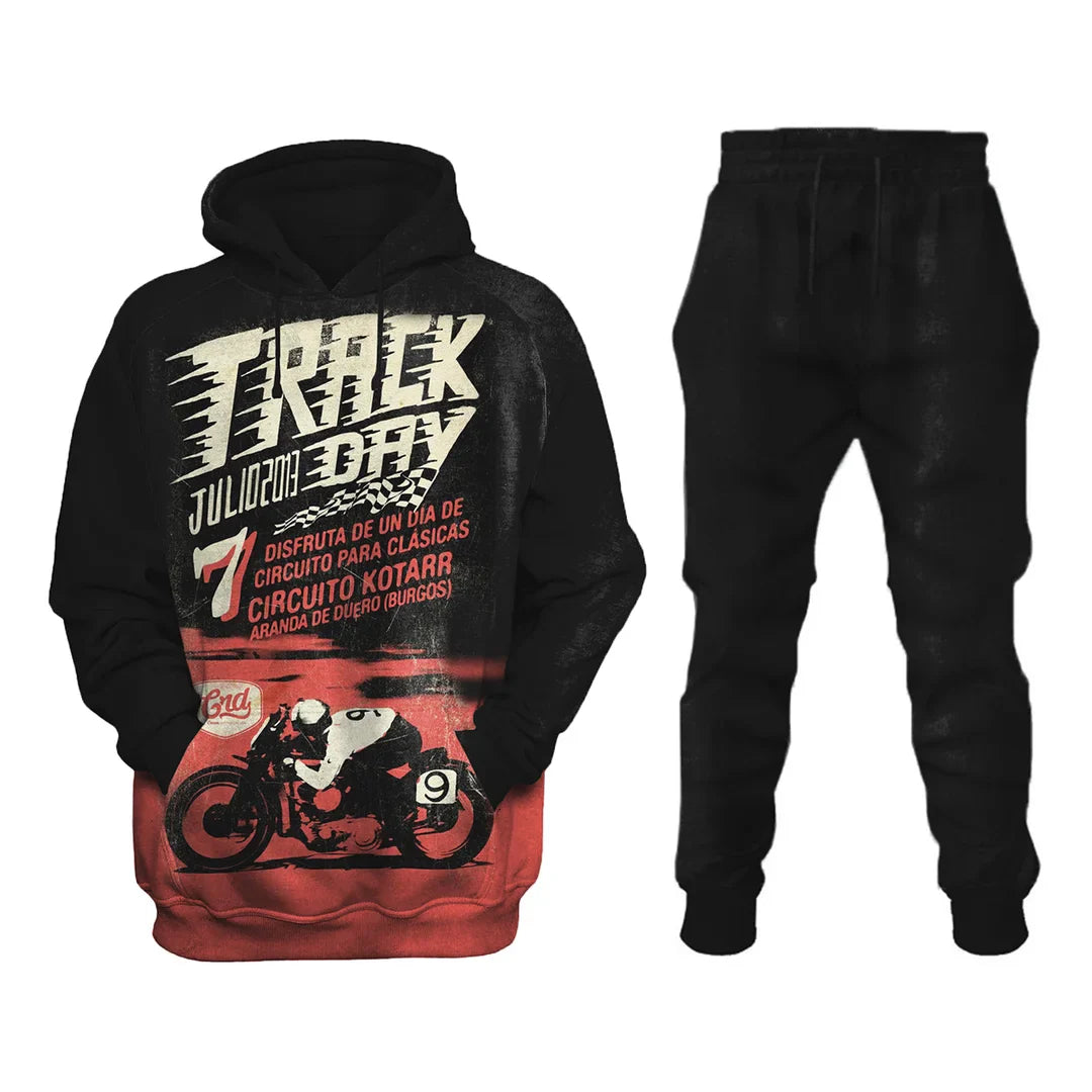 Track Day Retro Car Print Sweatshirt Set