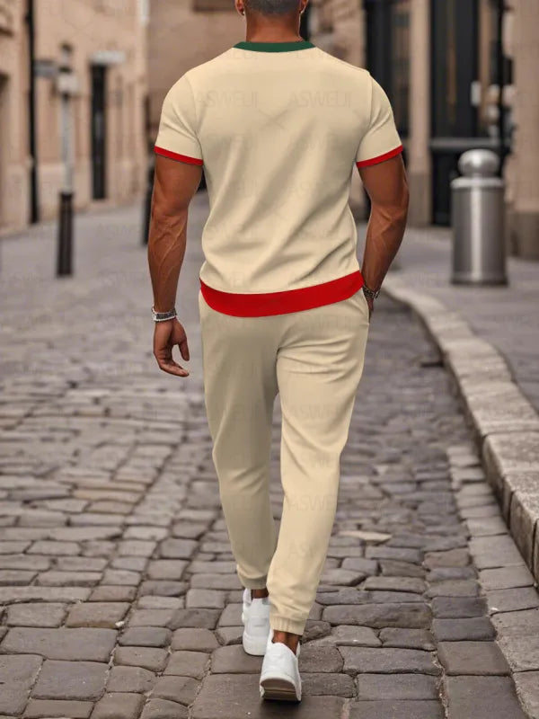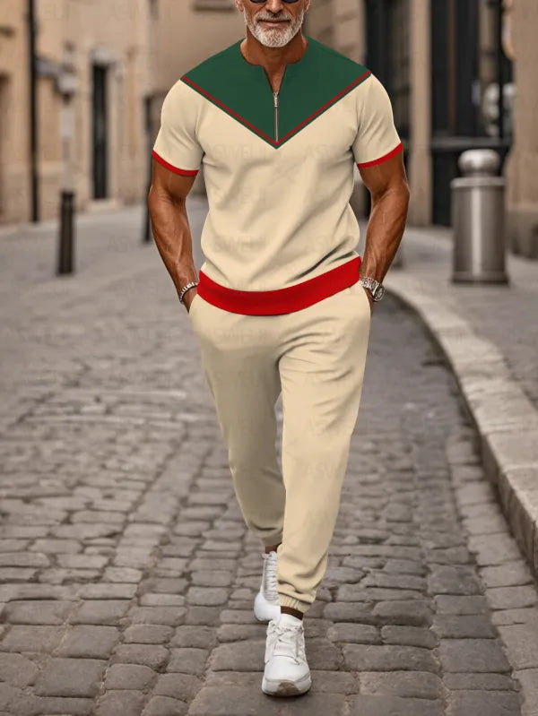Zipper Short Sleeve Long Pants Two-Piece Set