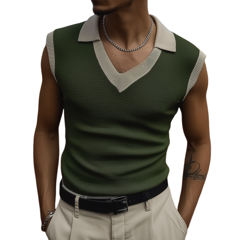 Adam | Men'S Casual Breathable Colorblock Lapel Slim Fit Knitted Sleeveless Polo Shirt