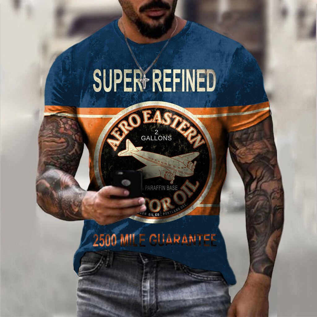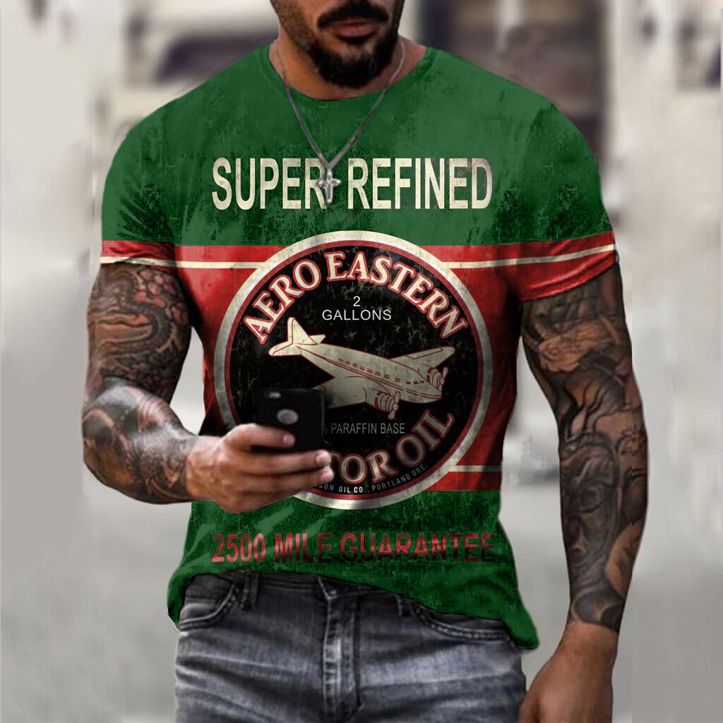 Black Casual T-Shirt With Retro Engine Oil Logo